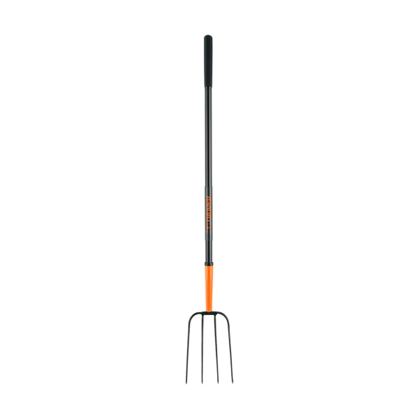 Bieldo para paja, 4 dientes, mgo largo de acero 48"