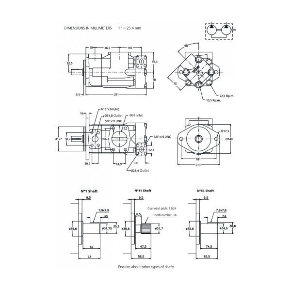 1º.- 21, 25, 30, 35, 38 y 45 galones/min. a 1200 rpm