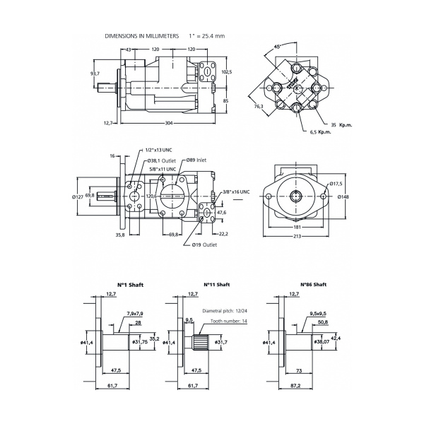 1º.- 42, 45, 47, 50, 57, 60, 67 y 75 galones/min. a 1200 rpm
