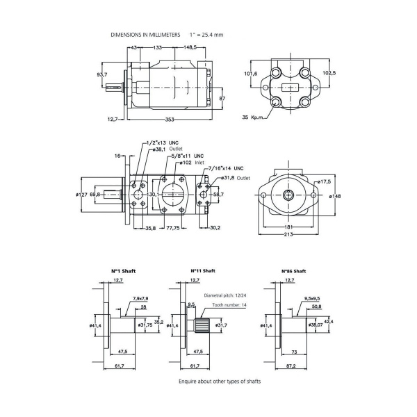 1º.- 42, 47, 50, 57, 60, 67 y 75 galones/min. a 1200 rpm