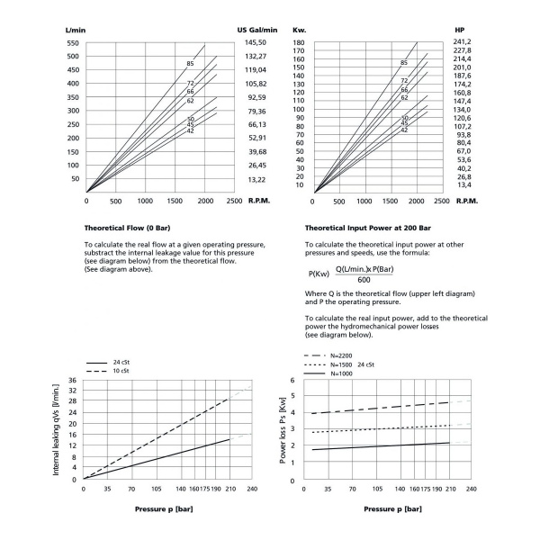 1º.- 42, 45, 50, 52, 57, 62, 66, 72 y 85 galones/min. a 1200 rpm