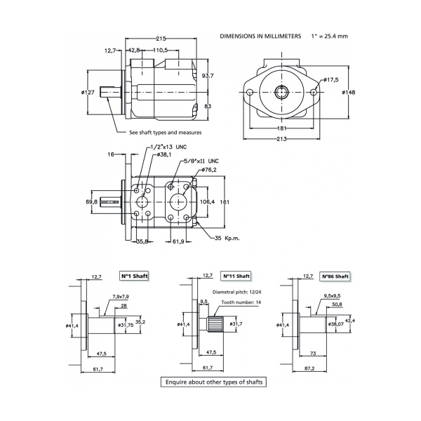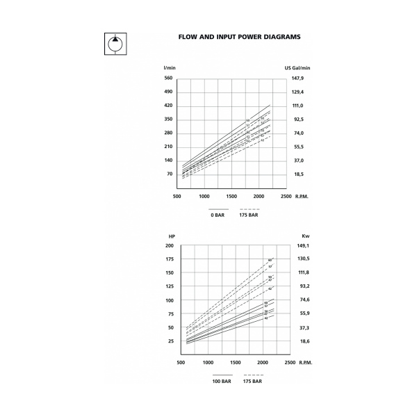 Caudales disponibles: 42, 45, 47, 50, 57, 60, 67 y 75 Gal/min. a 1200 rpm