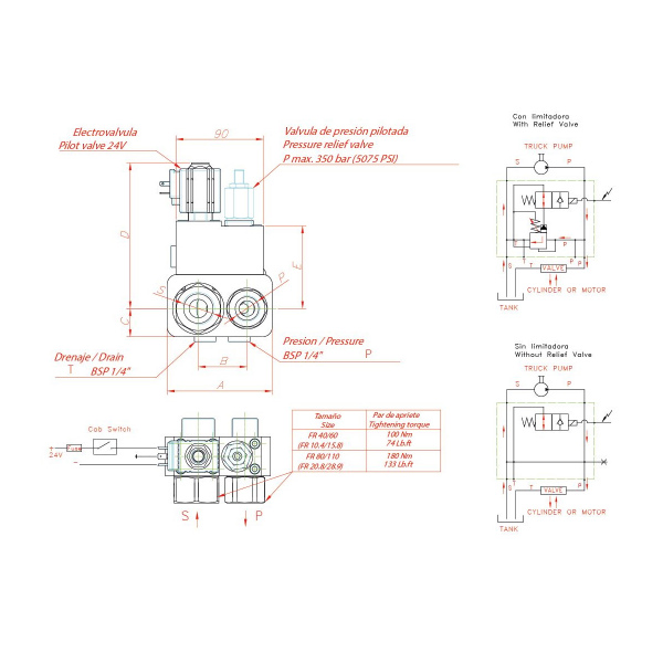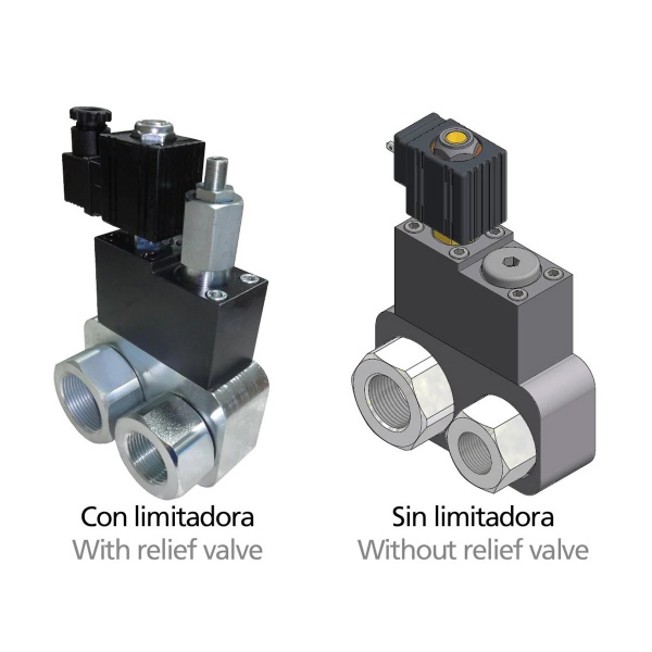 Valvula Bypass con o sin limitadora de presión que puede ser usada en aplicaciones donde la bomba funciona constantemente.