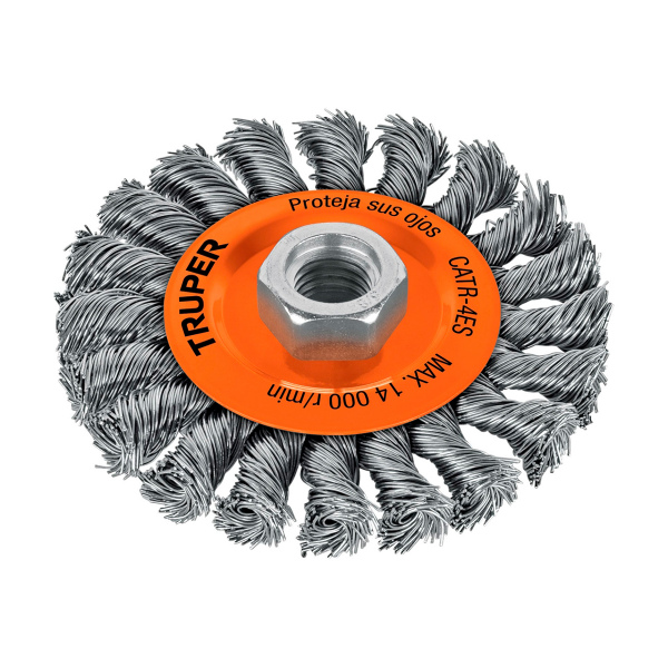 Carda circular 4" alambre trenzado, eje 5/8"-11, Truper