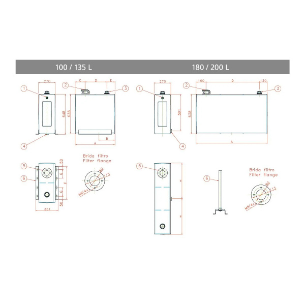Depósito de aceite para montaje trasero con indicador de nivel y brida para filtro.