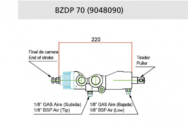 350 bar. Incorpora válvula antirretorno, final de carrera mediante tirador y también un interruptor de funcionamiento opcional.