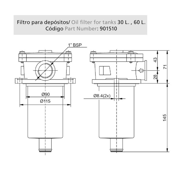 FILTRO DE RETORNO DE ACEITE (EN LA PARTE SUPERIOR) - Bezares