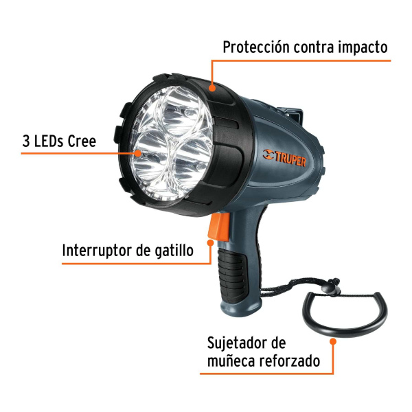 Lampara recargable de LED 1500 lm alta potencia, Truper