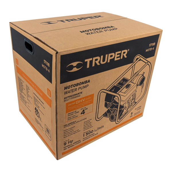 Motobomba autocebante 4" x 4" a gasolina 9 HP, TRUPER