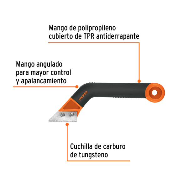 -Mango de polipropileno cubierto de TPR antiderrapante, angulado para mayor control y apalancamiento