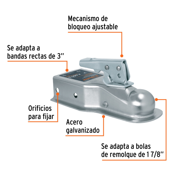 -Se adapta a bandas rectas de 3" de ancho y bolas de 1 7/8" de diámetro para remolque