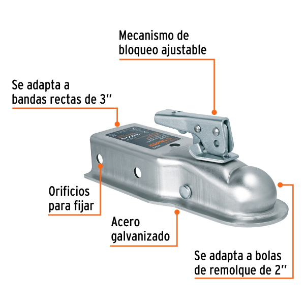 -Se adapta a bandas rectas de 3" de ancho y bolas de 2" de diámetro para remolque