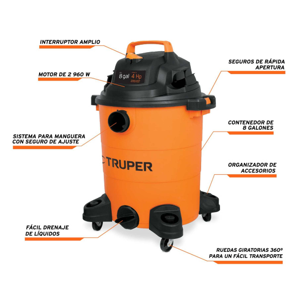 -Motor de 4 Hp (2,960 W) -Sistema para manguera con seguro de ajuste