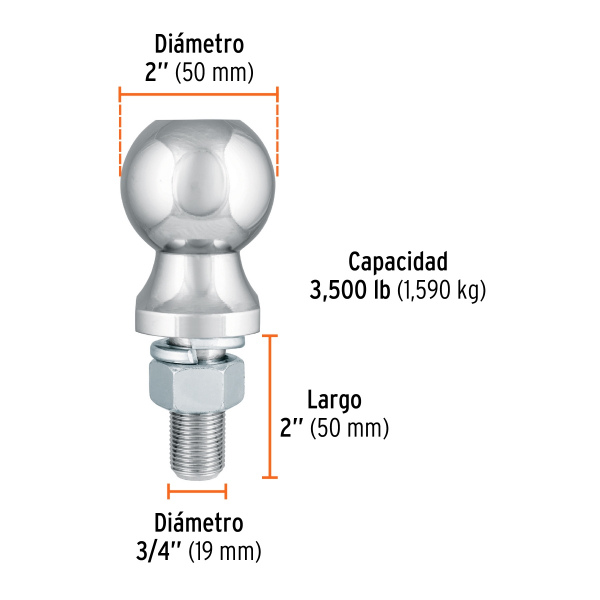Bola de arrastre para remolque, 2", 3500 lb, Truper