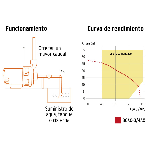 -Se utiliza cuando se quiere bombear un mayor volumen de agua. Ideal para bombear el agua de la cisterna al tinaco