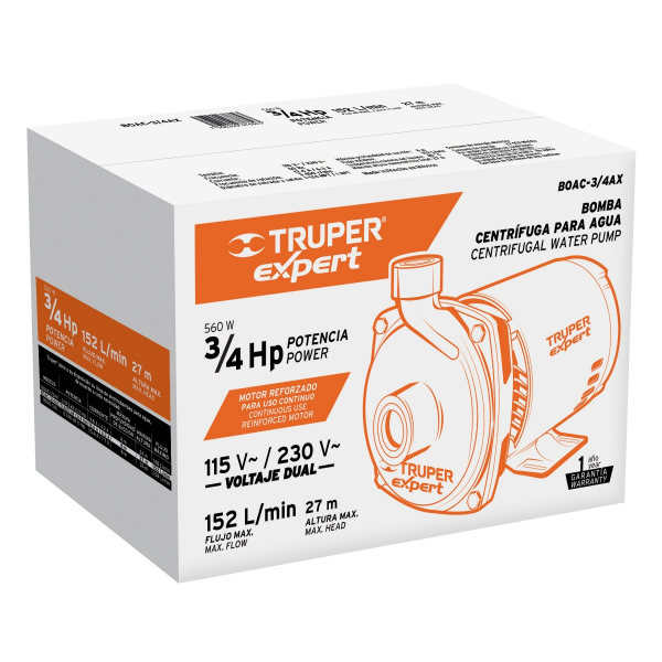 Bomba centrifuga para agua, 3/4 HP, Truper Expert