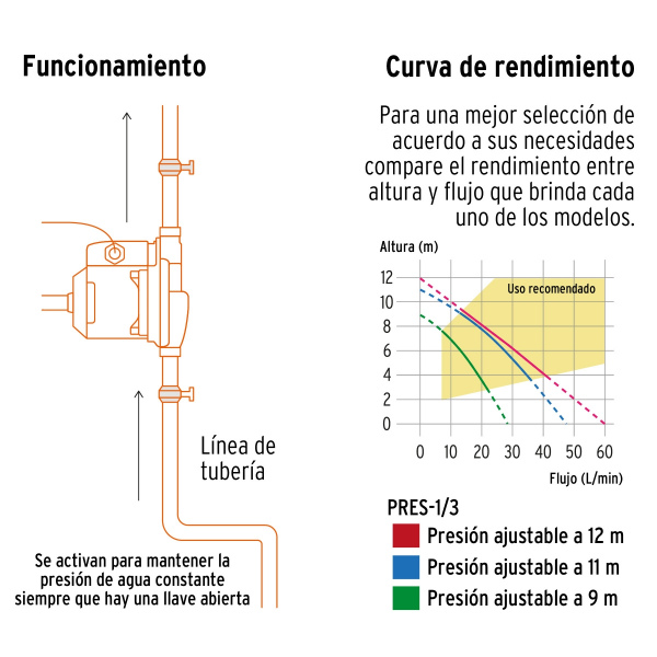 -Incrementa y mantiene la presión de agua constante al detectar presencia de flujo