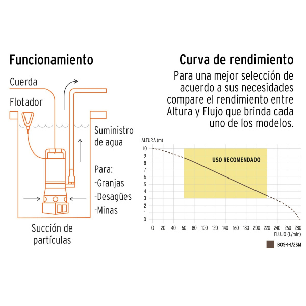 -Diseñada para uso doméstico e industrial como en fosas, pozos, minas y drenaje (para partículas hasta de 34 mm)