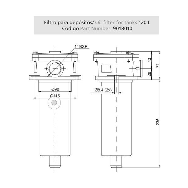 Filtro de aceite superior para línea de retorno. Cartucho incluido.