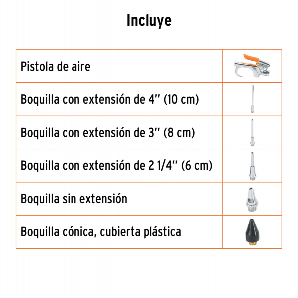Juego de pistola y 5 boquillas para compresor de aire Truper