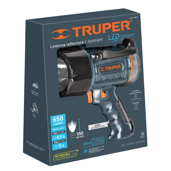 Lampara recargable de led alta potencia, 650 lm, 5 W