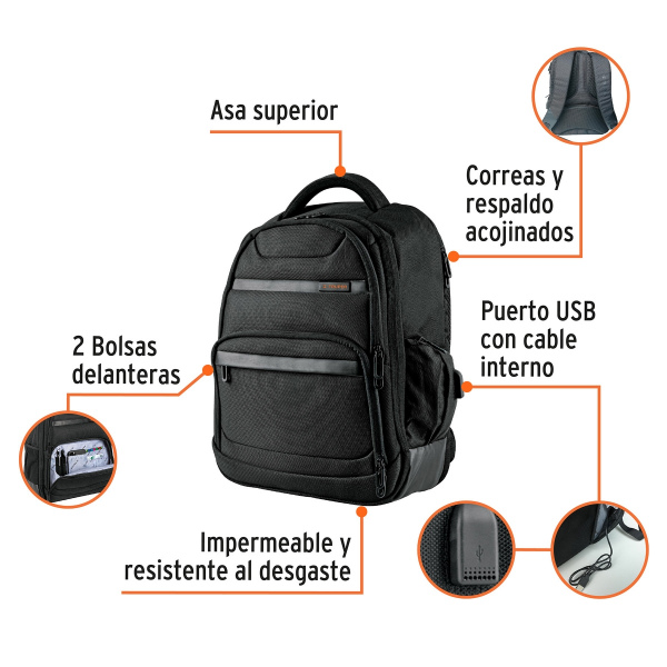 -1 Bolsa principal, 1 bolsa para laptop con forro interior acolchado y 2 bolsillos delanteros con compartimentos para accesorios