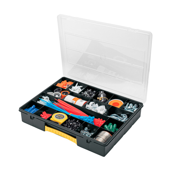 -Tapa que permite ver el contenido y evita que las piezas se muevan a otros compartimentos